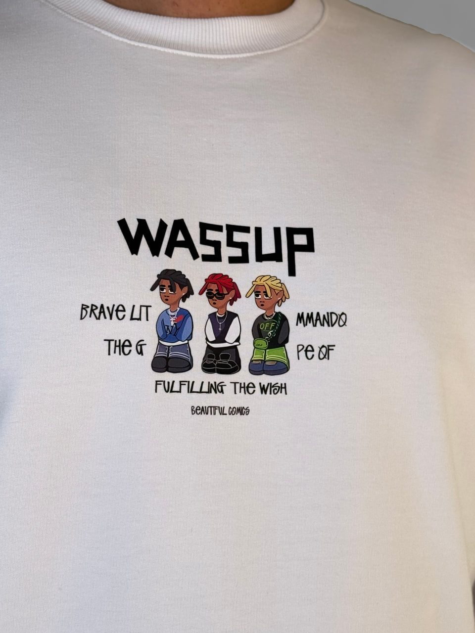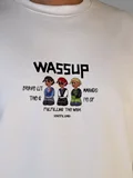 تیشرت WASSUP با طراحی کارتونی، انتخابی خاص برای کسانی‌ست که دنبال استایل متفاوت، پرانرژی و خلاقانه هستند. طراحی پشت و جلوی لباس با شخصیت‌های خیابانی و فونت‌های متنوع، حس جسورانه‌ای به استایل شما می‌دهد.