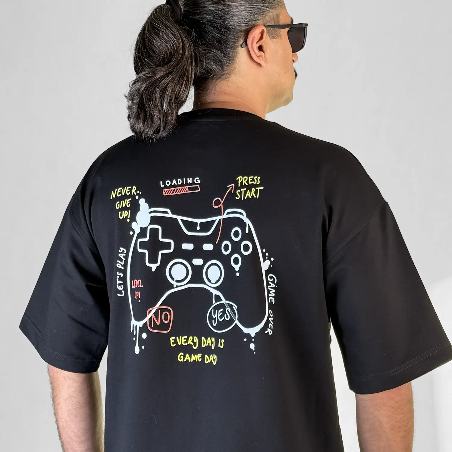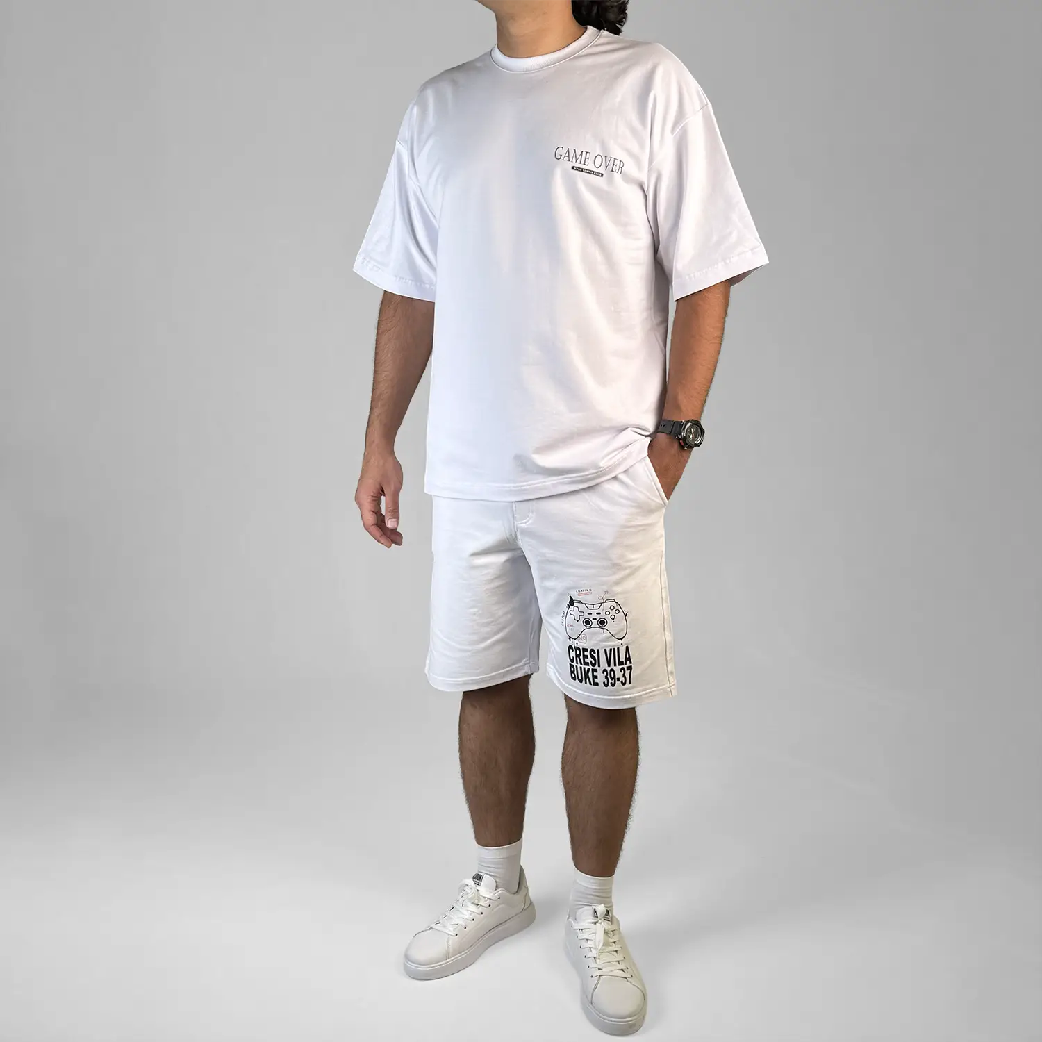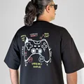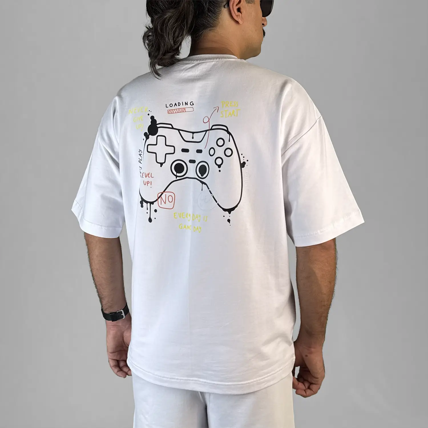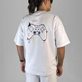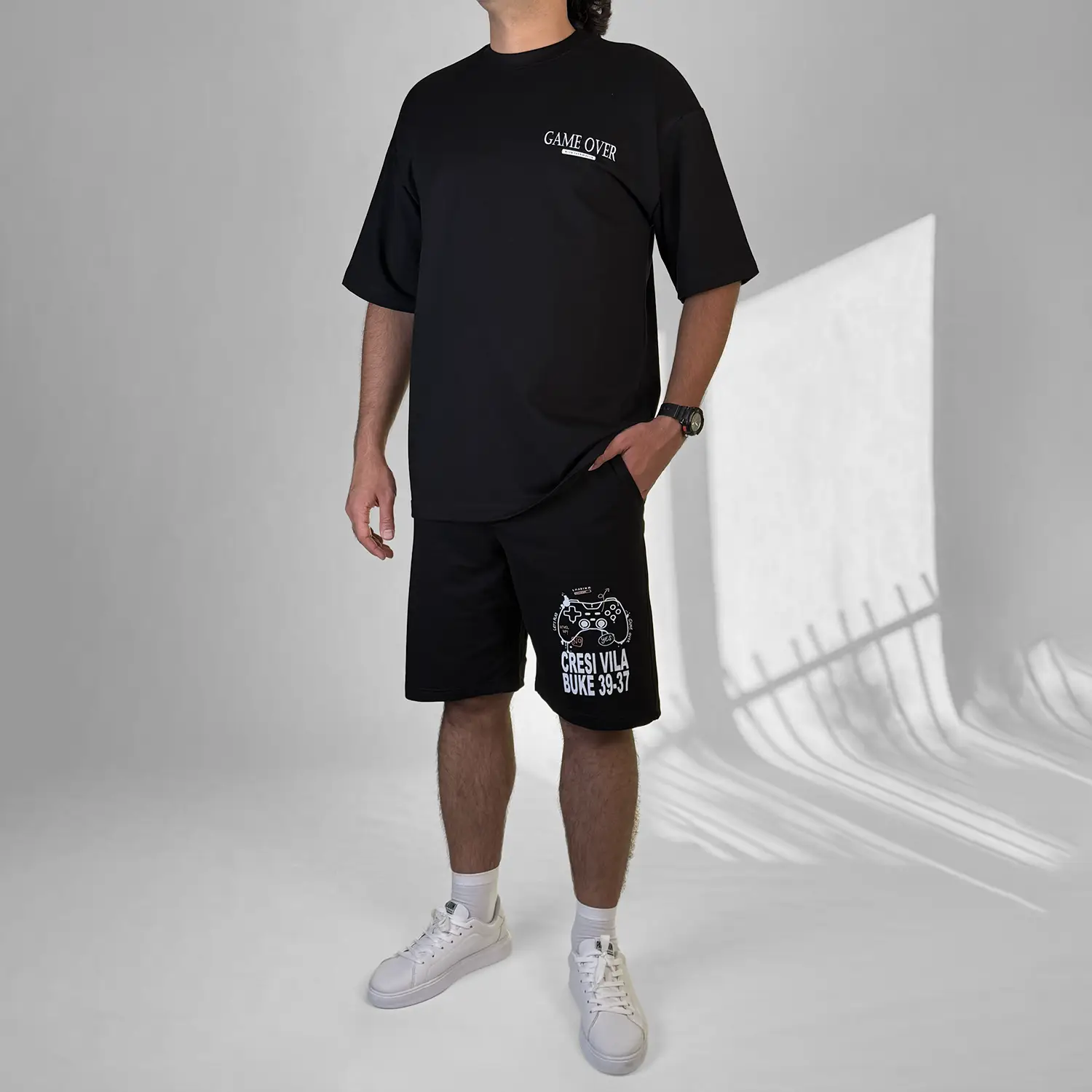 ست لباس مردانه GAME OVER با طراحی گیمینگ و پیامهای مثبت، انتخابی خاص برای طرفداران بازیهای ویدیویی و استایل خیابانیه. در قسمت جلو، تیشرت مشکی با نوشتهی "GAME OVER" روی سینه، حس مینیمال و گیمینگ رو منتقل میکنه. در قسمت پشت، چاپ رنگی و پرجزئیاتی از کنترلر بازی با عباراتی مثل "PRESS START"، "LEVEL UP"، "NEVER GIVE UP"، و "EVERY DAY IS GAME DAY" دیده میشه که روحیهی مثبت و پرانرژی رو به لباس اضافه میکنه. شلوارک مشکی هم با چاپ کنترلر بازی طراحی شده که هماهنگی کامل با تیشرت داره.