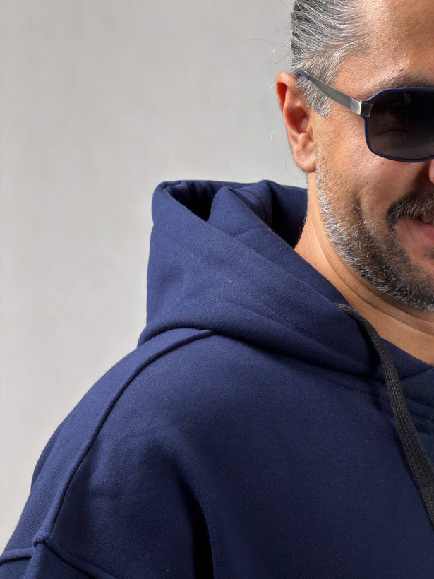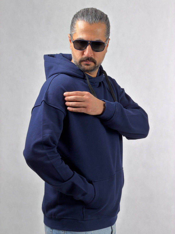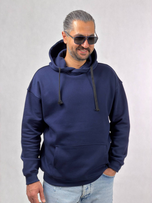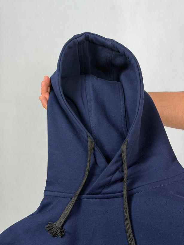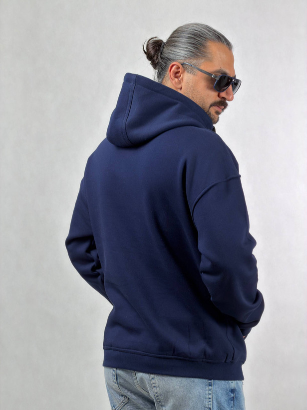 هودی مردانه جنس سه نخ پنبه داخل کرکی با کلاه دوبل به رنگ سورمه ای