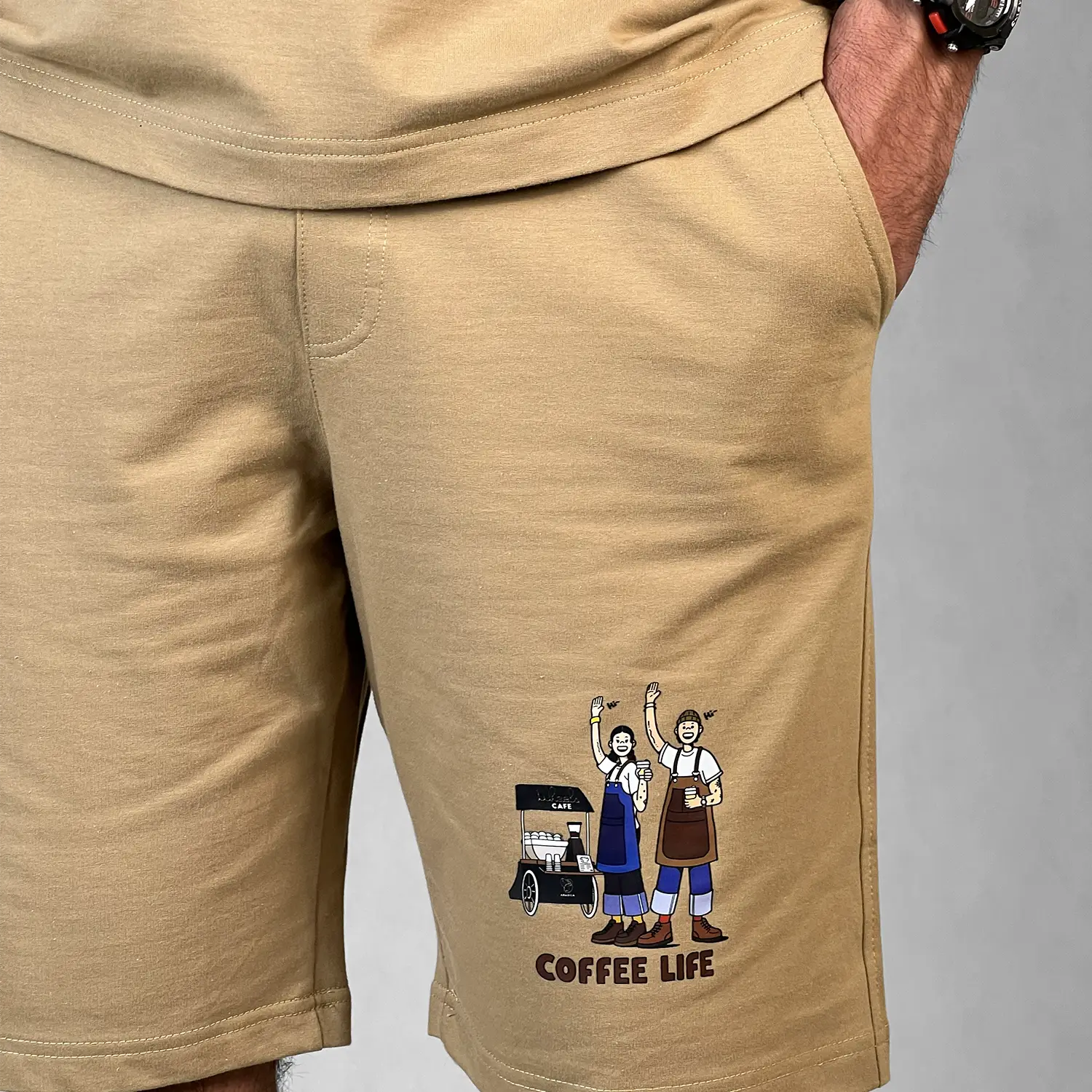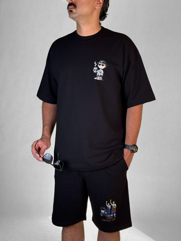 ست تیشرت شلوارک ماکان با چاپ Coffee Life