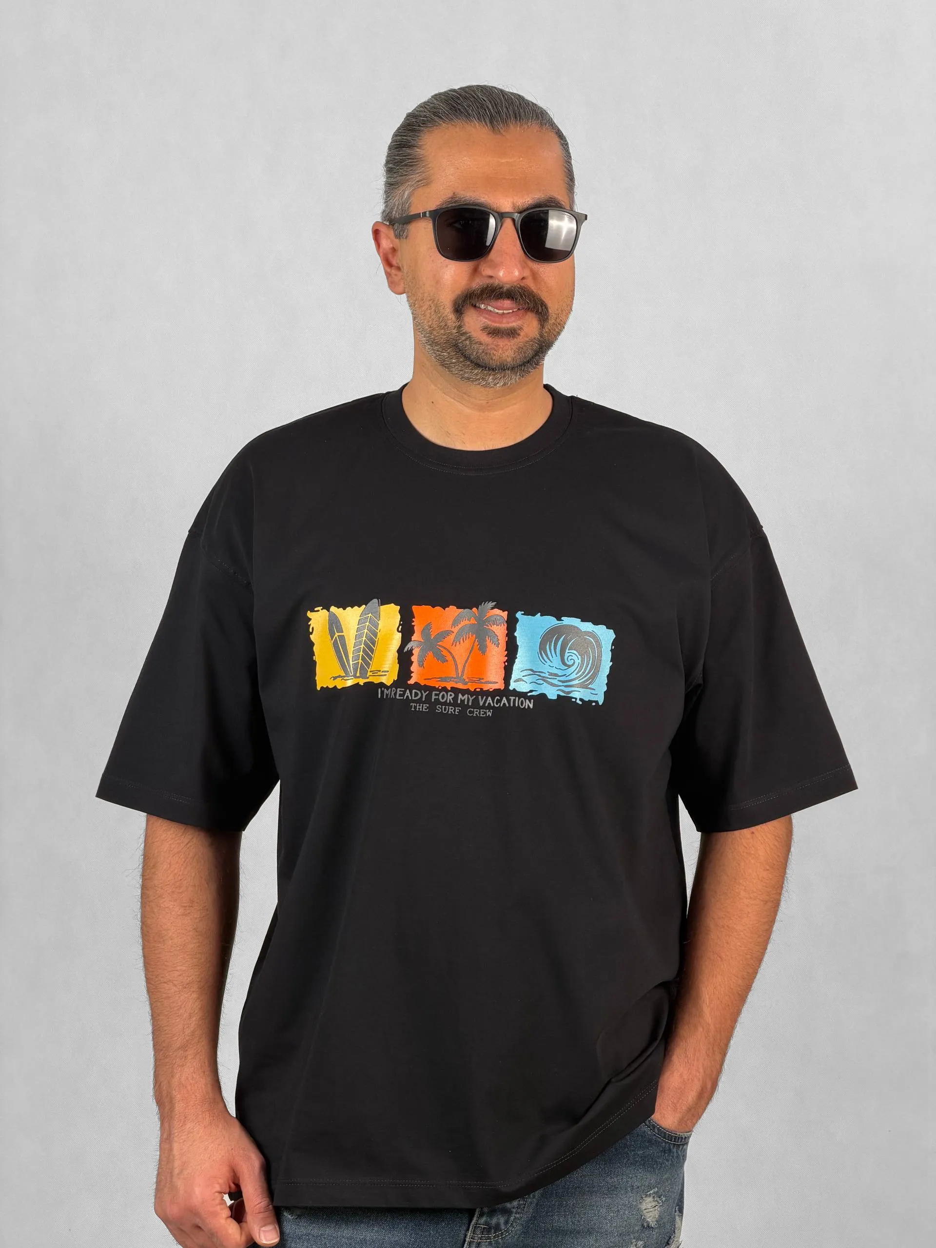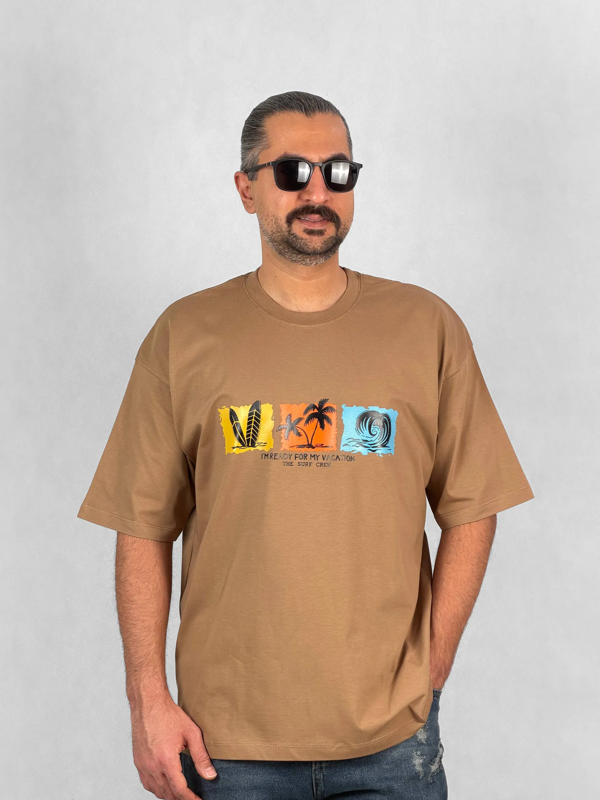 تیشرت مردانه آستین کوتاه جنس پنبه براش با طرح چاپی Surf Crew
